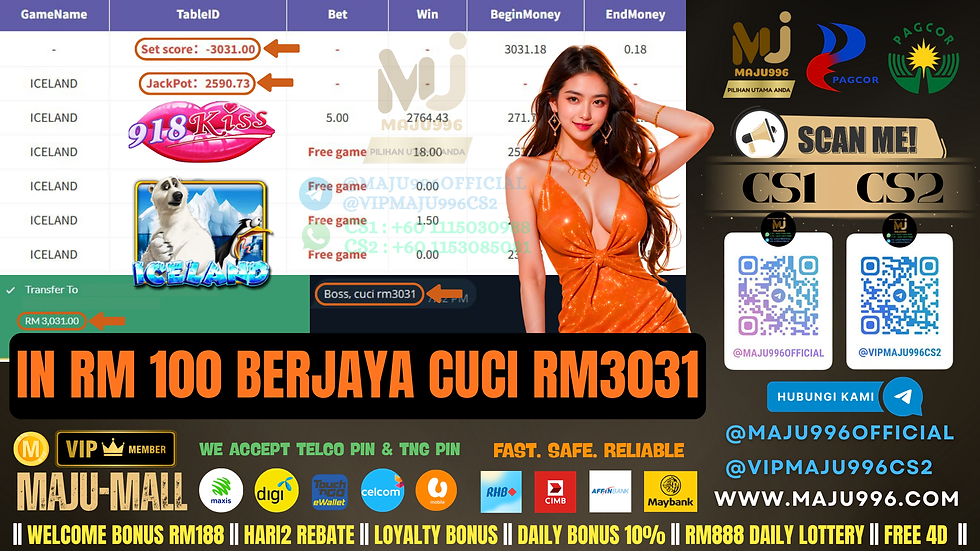 🤩918Kiss Game 🐻❄️Iceland🐻❄️ TopUp RM100, Cuci RM3,031‼️Free Game Sedang Jatuh, Jangan Lepas Rezeki Ni‼️